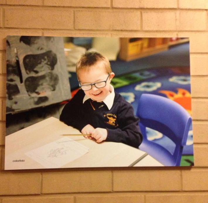 Every few years a photographer comes in and snaps pics of the kids going about their typical school day and some are chosen to go in the corridors and on the website. Seb’s was chosen alongside others purely and simply to reflect a student hard at work. Nothing more. Nothing less. But it inadvertently sends out such a strong message to all who walk past it – visitors and pupils alike. Of inclusion. Diversity. Acceptance. Ability.